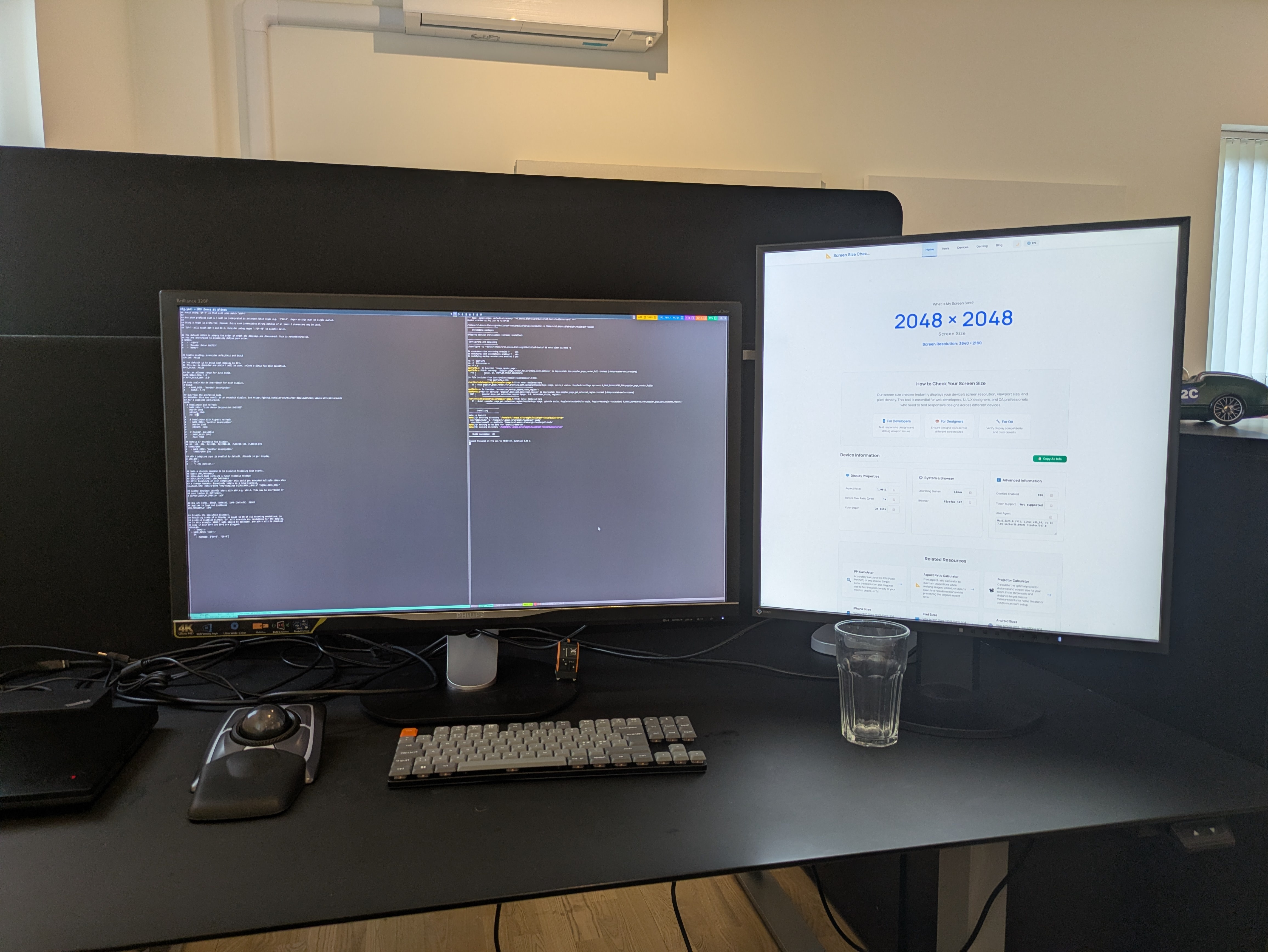 Two screens on a desk, a 16:9 4…