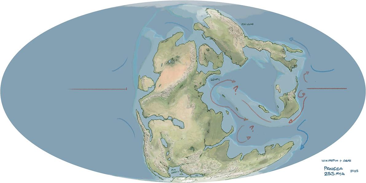 Working on a late Permian Pangea map.