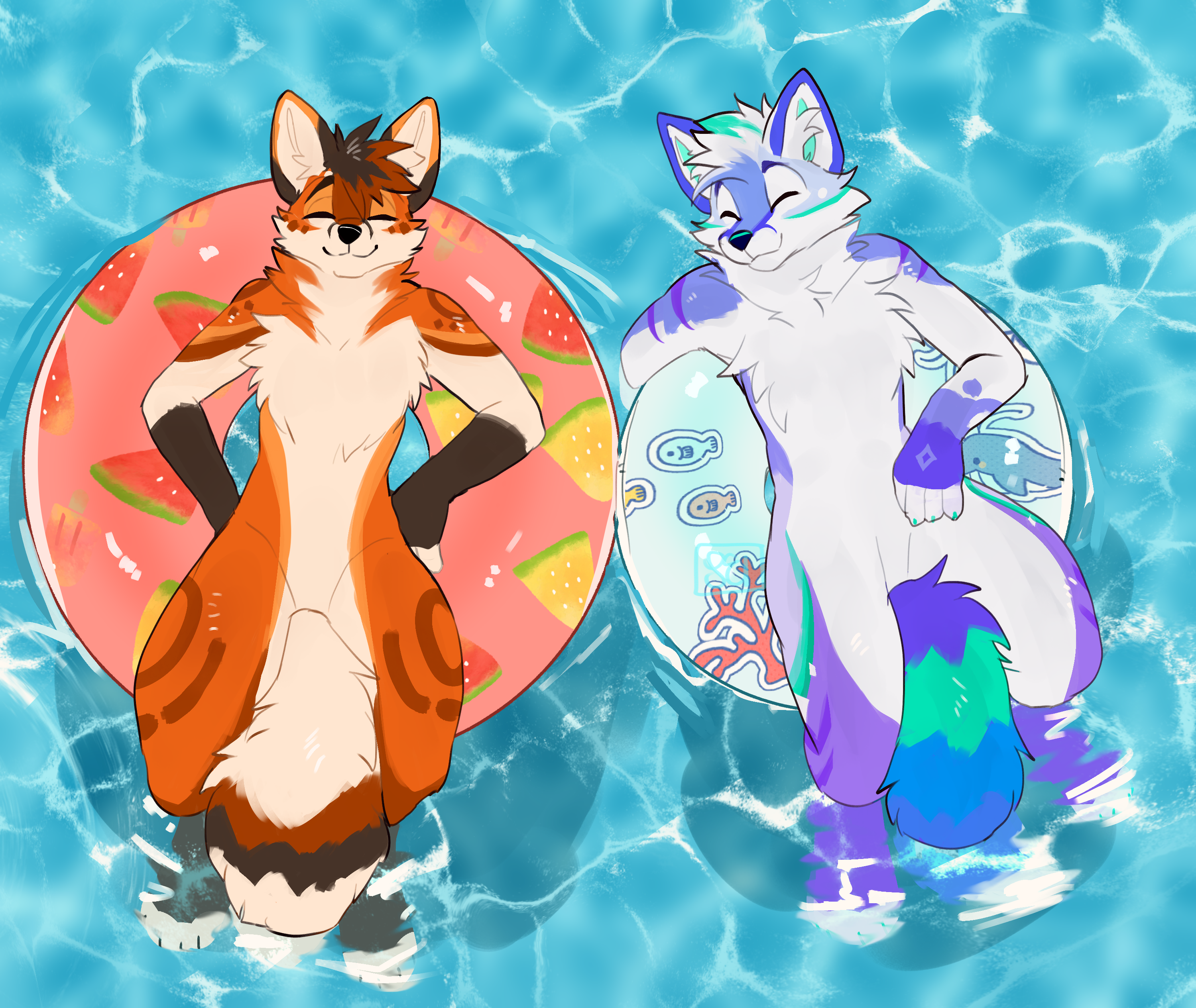 "Summer might be over, but that doesn't stop these fancy Foxes to have a great time lounging in the pool."