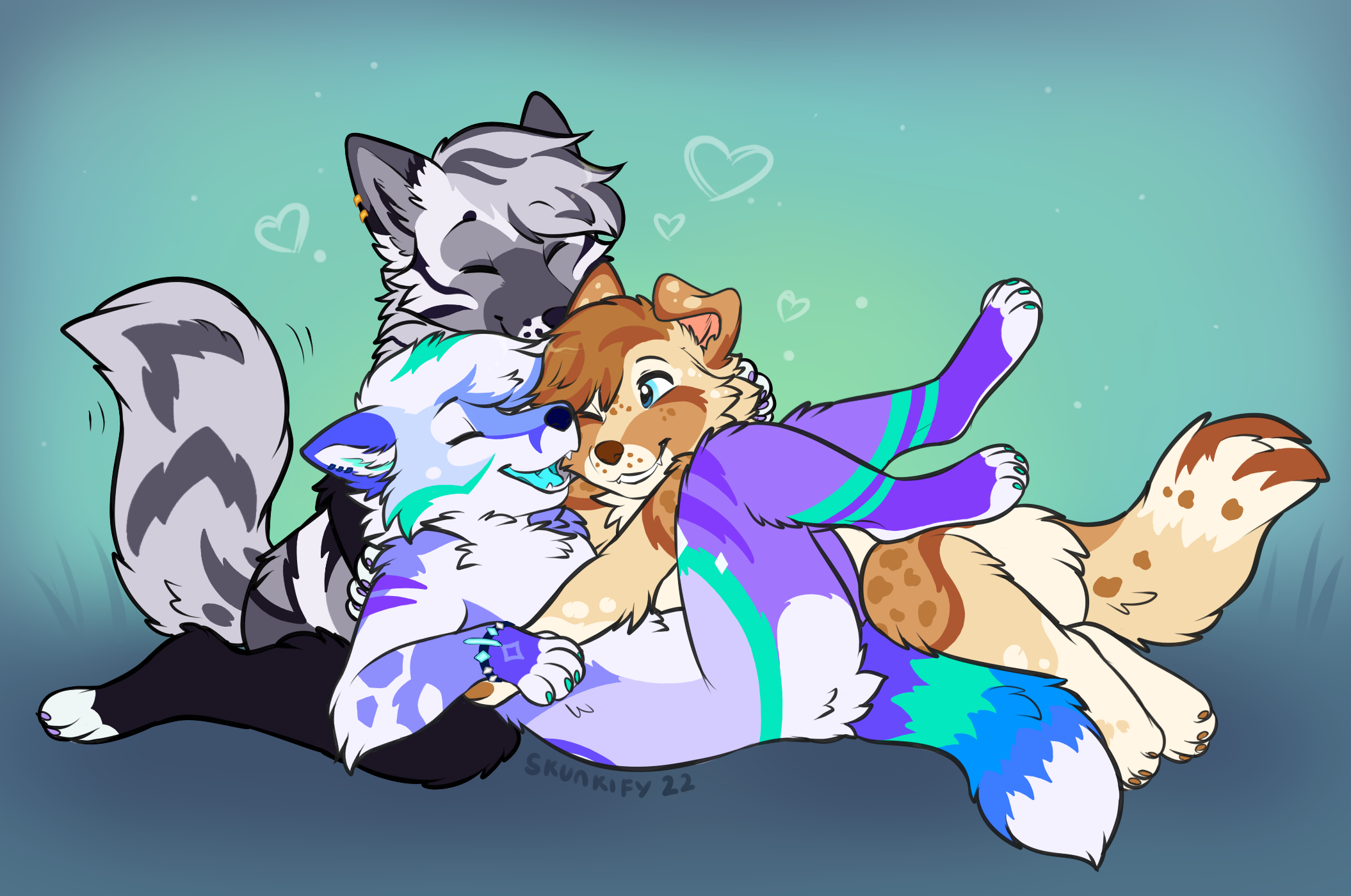 Cute little YCH I got gifted by https://bsky.app/profile/asreyhyena.bsky.social, feat @gribbit , colored by https://bsky.app/profile/skisywisy.bsky.social